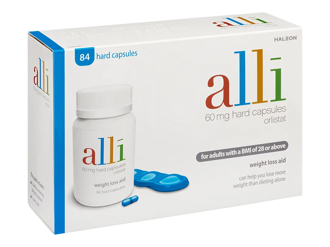 alli is a branded weight loss pill that contains the active ingredient orlistat. It works by blocking the absorption of dietary fat, so that it passes out of your body as waste, helping you to lose weight. Each pill contains 60mg of orlistat.